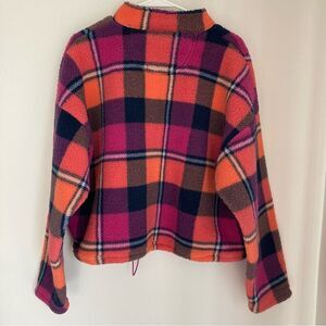 American Eagle Women’s cropped plaid fleece jacket size large. EUC! Cute crappy fleece with pockets! Really fun vibrant colors. Warm and cozy.