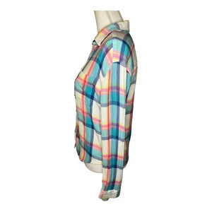 American Eagle Women’s Small Pastel Plaid Boyfriend Fit Button Down Top