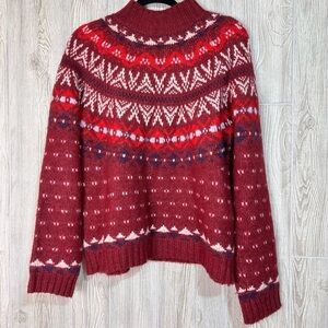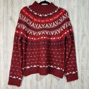 American Eagle Wool Blend Mock Neck Fair Isle Sweater Size Large