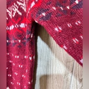 Comfy, cozy wool blend sweater for any winter day in a maroon/red color way and a fair isle pattern.