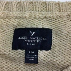 American Eagle Wool Crewneck Sweater L Stripe Blue Green Knit Pullover Mens