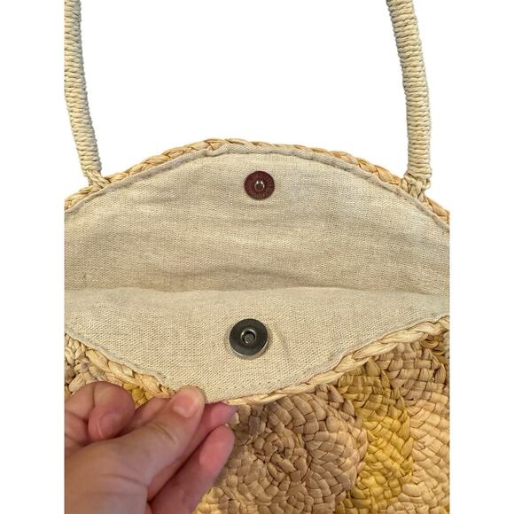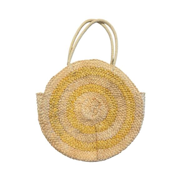 American Eagle Woven Straw Circle Tote Bag Natural Yellow Boho Beach Summer LG