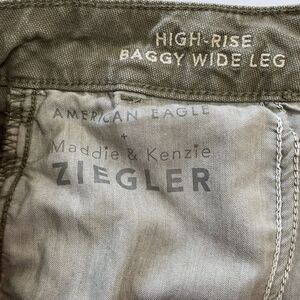 American Eagle X Ziegler HIGH RISE BAGGY WIDE LEG Pants 12 Short Olive Stretch