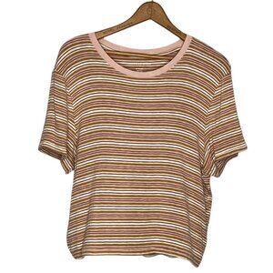 American Eagle XL Brown Stripe Ribbed Knit Crop Crewneck T-Shirt Baby Tee Top