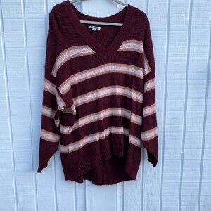American Eagle XL Sweater V-Neck Striped Maroon Oversized Slouchy Emo Mall Goth
