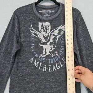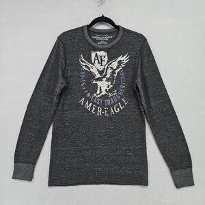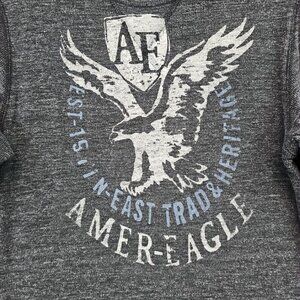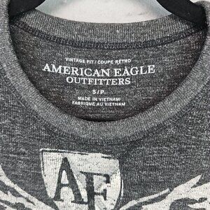 American Eagle Y2K Graphic T-Shirt Mens S Gray Waffle Knit Vintage Fit Preppy