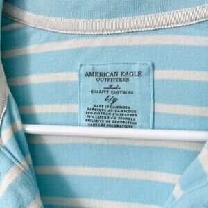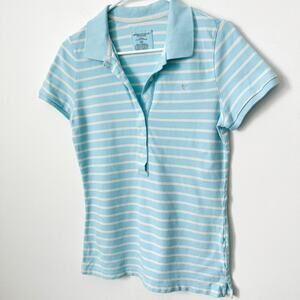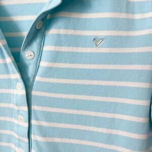 American Eagle Y2K Striped Long Fitted Polo Shirt Womens Large