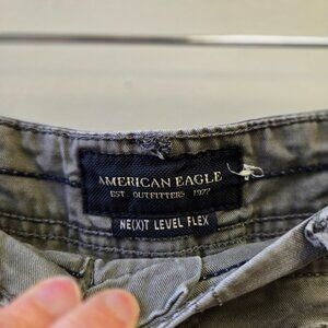 tags/keywords: cargo shorts, American Eagle, men's shorts, gray shorts, cotton blend shorts, casual wear, summer shorts, cargo pockets, durable shorts, everyday wear, flexible shorts, Next Level Flex, stylish shorts, Y2K Style