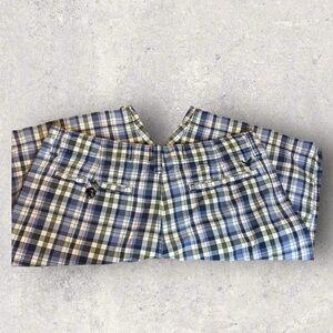 These shorts feature a multi-color Plaid Pattern, made from 100% cotton, offering comfort and breathability, flat front, zipper closure, and classic fit. Size 34 and gently used condition. No Defects to report. Smoke free home Questions? Leave a comment below!