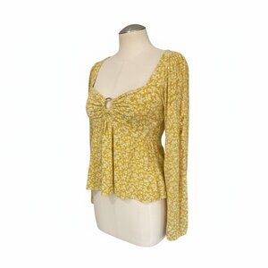 American Eagle Yellow Floral Long Sleeve Peplum Top Size Small 100% Viscose