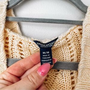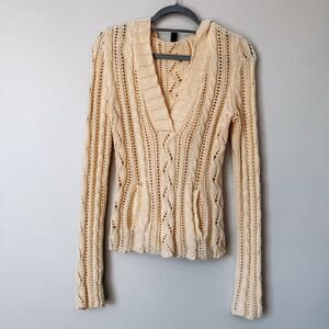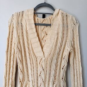 American Eagle Yellow Long Sleeve Hooded Knit Sweater Size Medium