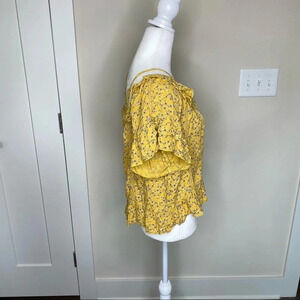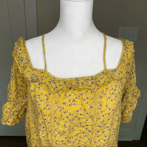 American Eagle Yellow and Blue Floral Print Off The Shoulder Top Ruffles Straps