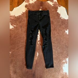 American Eagle black distressed Next Level stretch curvy high rise jegging