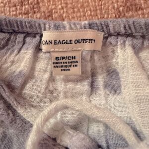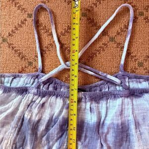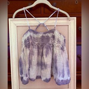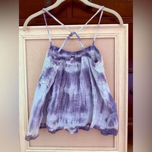 American Eagle Outfitters flowy boho purple / white tie dye camisole top with thin straps, criss cross back and smocking / lace detail on the front. Excellent condition with no rips stains or tears. M