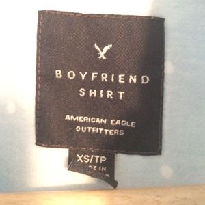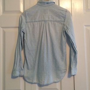 AEO. XS. Faded blue. White polka dots. Boyfriend shirt. Button down.