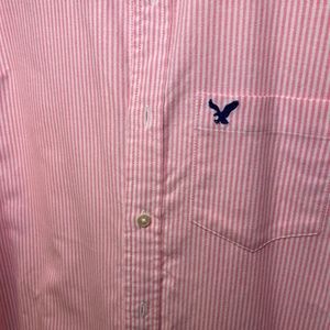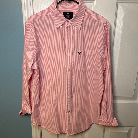 Pink and white pinstripe men’s shirt-classic fit. Button down collar