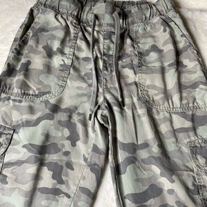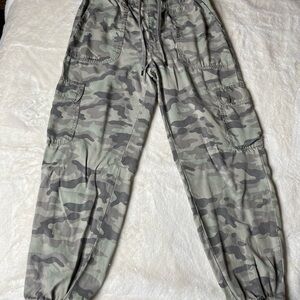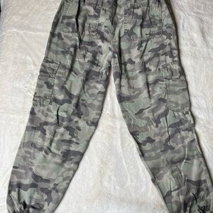 American Eagle camouflage pants, pant in good pre-owned condition, slight pulled to right thigh, slight discoloration to strap, see pictures for exact condition. Sold as it. Size S/P