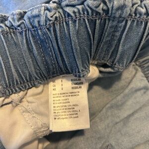 American Eagle light wash cargo jeans, elastic high waist and ankles, size 0. Good condition.