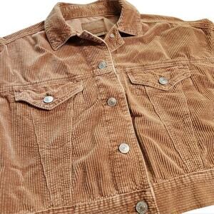American Eagle corduroy cropped trucker jacket. Button closure and front pockets. Tan, size extra small, excellent pre-owned condition.
