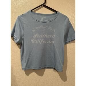 American Eagle cropped tee sz XL I’d rather be in Southern California light Blue