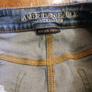 Measures 17" across waistband, 16" back length, 7.75" from top of waistband to bottom of fly. Zipper and button both work properly.