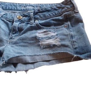 Nice Distressing on these short shorts. Size 8. Classic American Eagle cutoffs. Good used condition, no flaws.