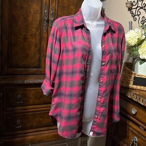 American Eagle flannel boyfriend fit pink and gray Amazingly soft shirt