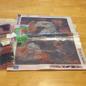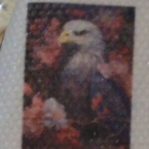 American Eagle in floral foreground. New kit with tools, diamond beads and canvas. 30x40CM = approx 11.81" wide and 15 3/4" long rolled canvas.