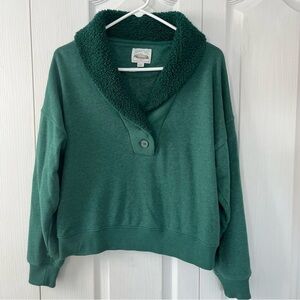 American Eagle green pullover high neck shawl collar Sherpa. V/neck 2 button. Long sleeved. 60% cotton 40% polyester. Pit to pit 24”. Length 22”. size M