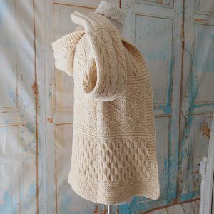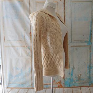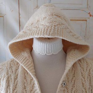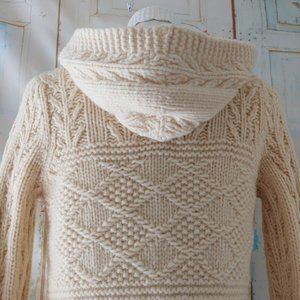 American Eagle hand knit 100% lambs wool hooded cable cardigan sweater/S/cream