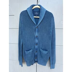 American Eagle heavy knit Cardigan Shawl Collar Kurt Cobain Grandpa SZ M indigo
