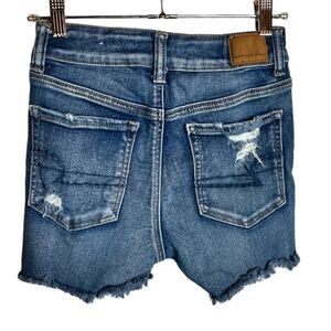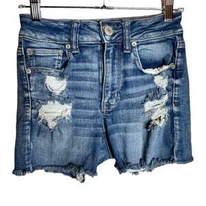 American Eagle high-rise distressed shorts size 2. In EUC smoke free dog friendly home. Measurements are approximately 12” waist 9” rise and 4” inseam. Bin B