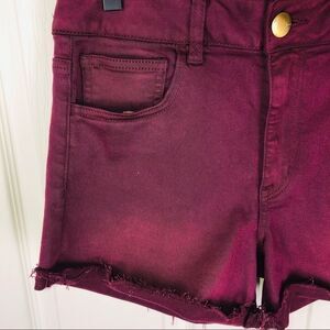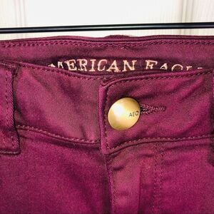 Excellent like new condition in a size 10. American Eagle hi-rise burgundy shortie shorts. Super Stretch frayed hem shorts.