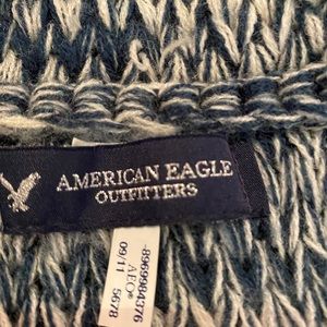 Warm and thick, shades of denim and slate blue, gray and cream.