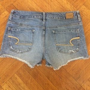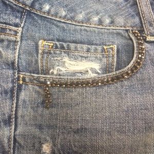 American Eagle ripped jean shorts, like new, stones decorated around front pockets, right side needs to be fixed (a few of the stones need to be sewed back on one side).