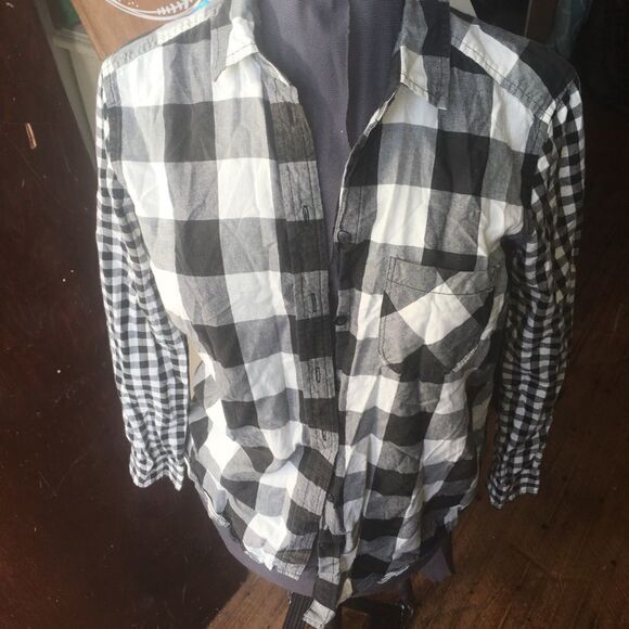 American Eagle plaid, lumberjack, monochrome, cozy, comfortable button down shirt. Two pattern shirt. In excellent condition. Approximately 20 inches from armpit to armpit, 31 inches long. From a pet and smoke free house. Happy to bundle!