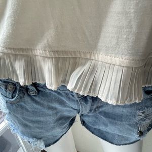Delicate tank with lace details and pleated hem. Also has adjustable straps.