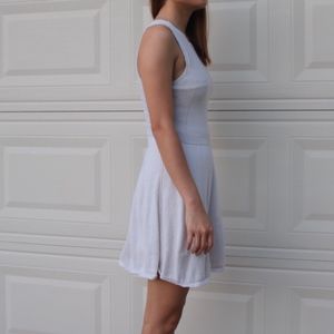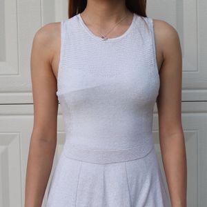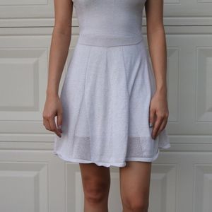 This is a super cute and stretchable white dress with gold specks all over it. It has a white layer inside for coverage. at the same, the outer layer has this almost like net-like pattern that show off your body at all the right places and make the dress so flirty i love it.