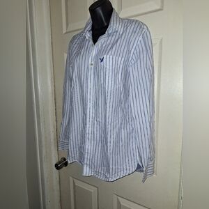American Eagle outfitters striped button-down shirt size medium pit to pit size is 22.5" top of shoulder to bottom hem is 29" if you have any questions please message me bundle more items for bigger deals Bin-101