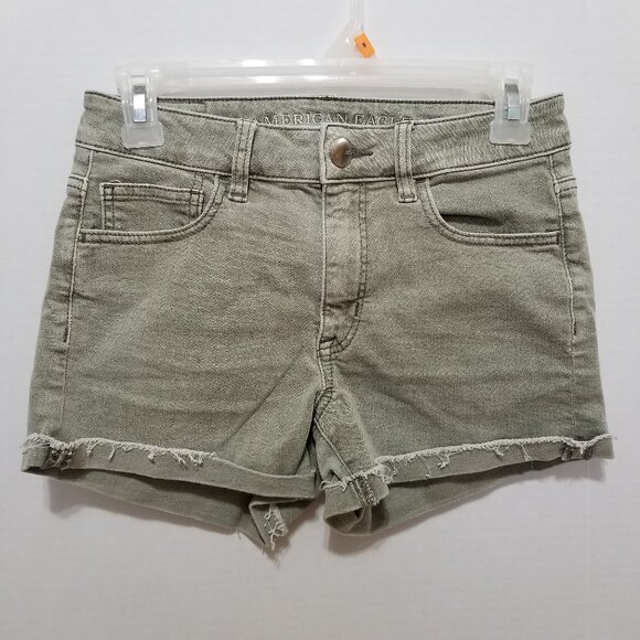 American Eagle shorts 2 Hi-Rise Shortie stretch denim jean frayed raw hem cuffed
