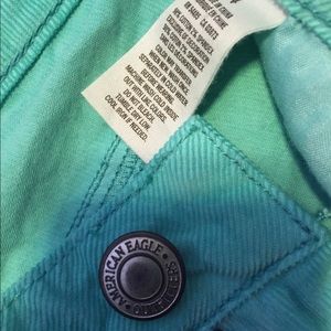 Soft material size 4 real or turquoise color natural fridge hem corduroy type material. Look really nice on!!