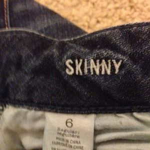 American Eagle size 6 skinny jeans. Only been worn a handful of times, great condition still. These are amazing because they are stretchy material and feel so comfortable on!! Dark wash.