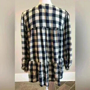 American Eagle size Medium pullover blue and cream plaid peplum blouse