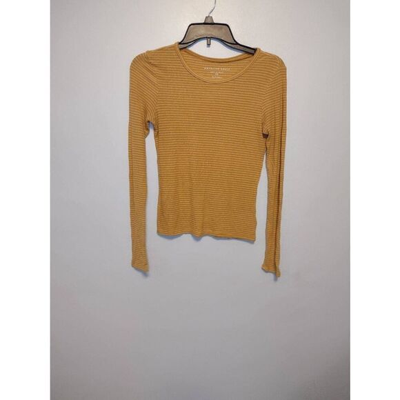 American Eagle size XS Soft & Sexy Rib Mustard Yellow White Stripe Shirt