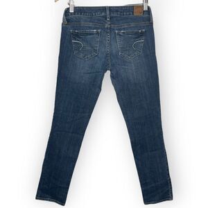 American Eagle Jeans size 4 Short in EUC. Blue skinny jeans, 99% cotton. Comes from a smoke free dog home.