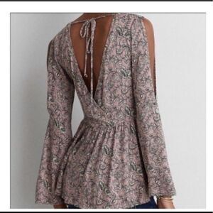 American Eagle soft & sexy mauve floral long sleeve blouse size small
