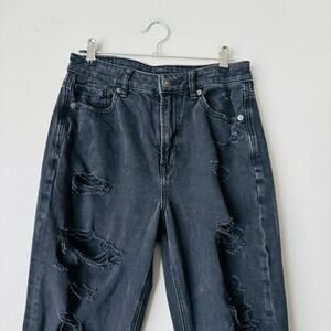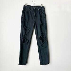 American Eagle stretchy distressed ripped black Mom jeans woman’s size 2