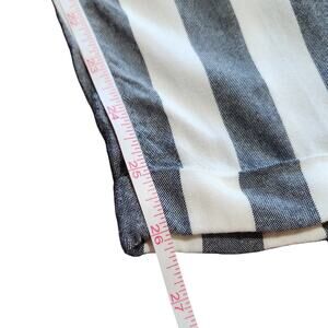 American Eagle striped pants feature an elastic waist and fabric belt. White and chambray blue stripes, decorative buttons, cuffed hem, size small.