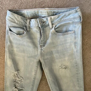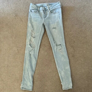 American Eagle superstretch skinny jeans size 4 white washed denim ripped