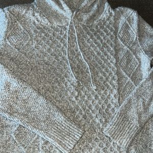 Beautiful gray hoodie sweater, excellent condition! Absolutely no pilling, rips or tears! Slightly longer 26” from top of shoulder to bottom hem.